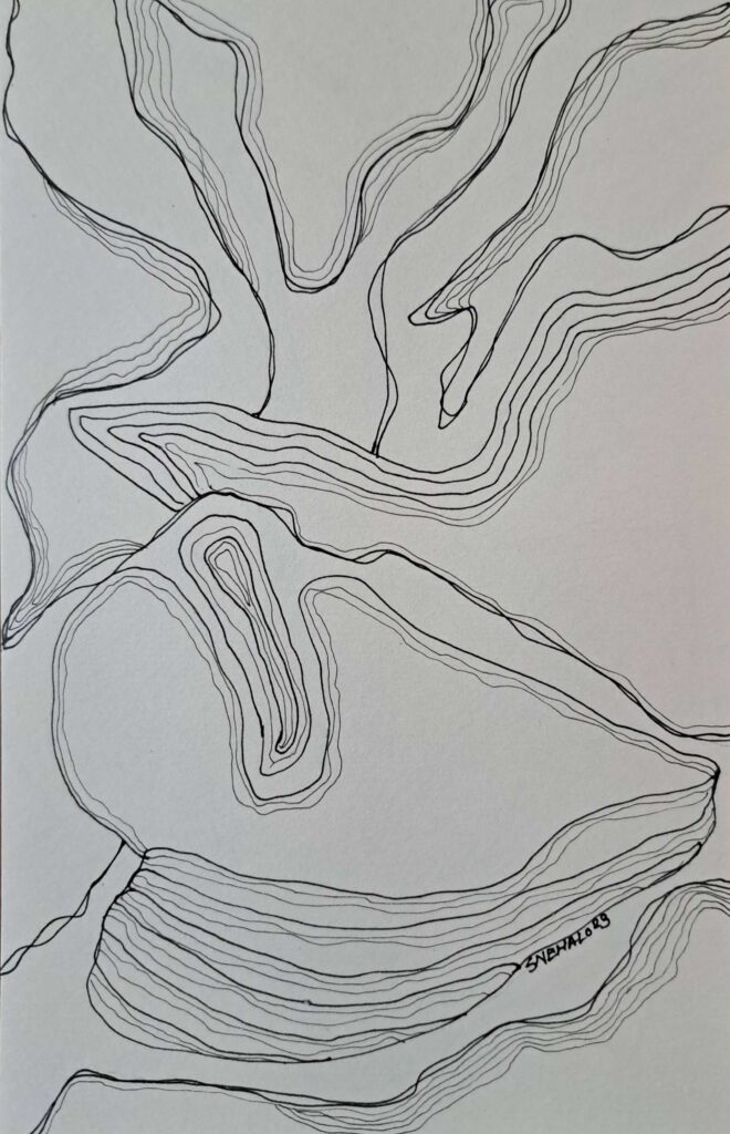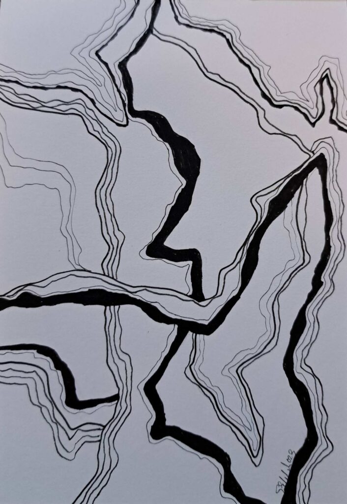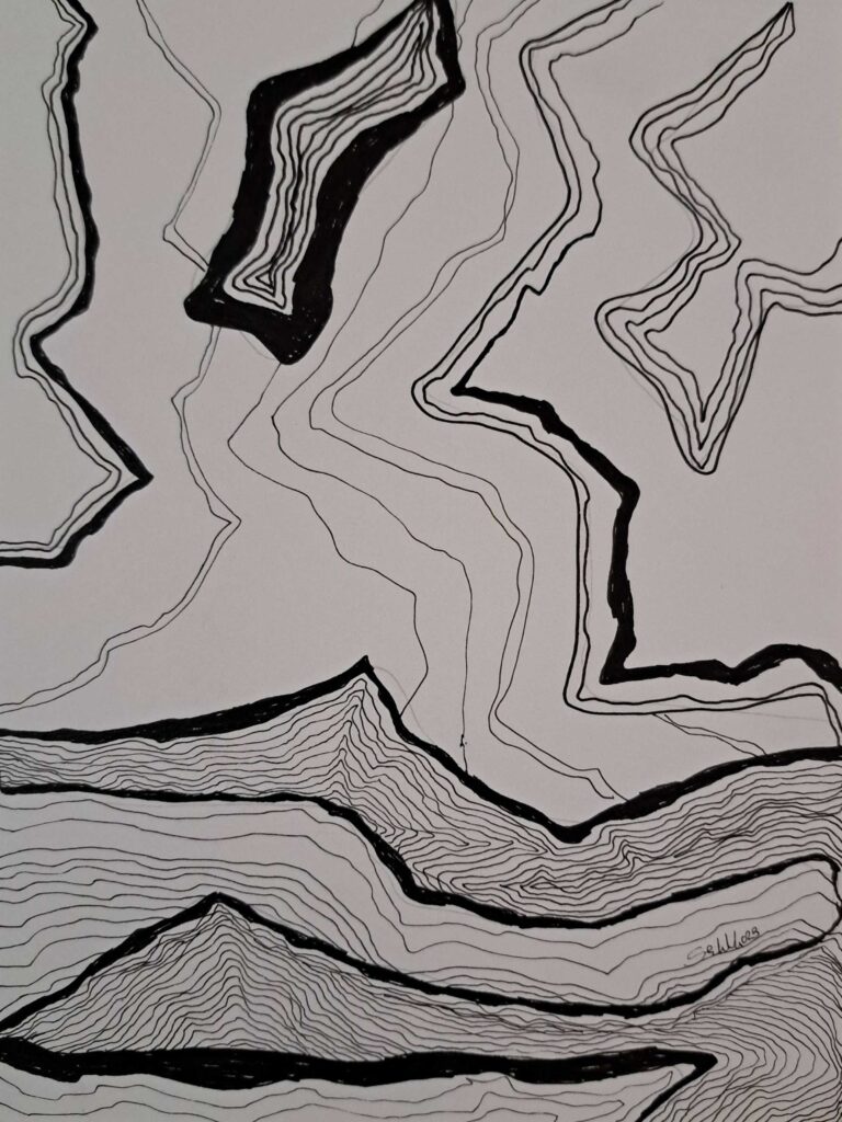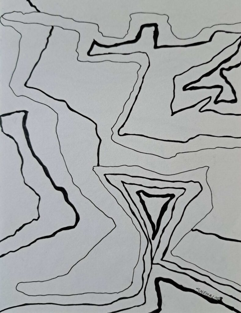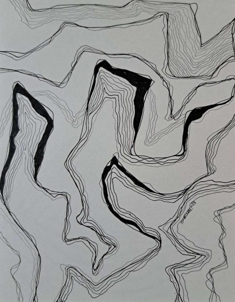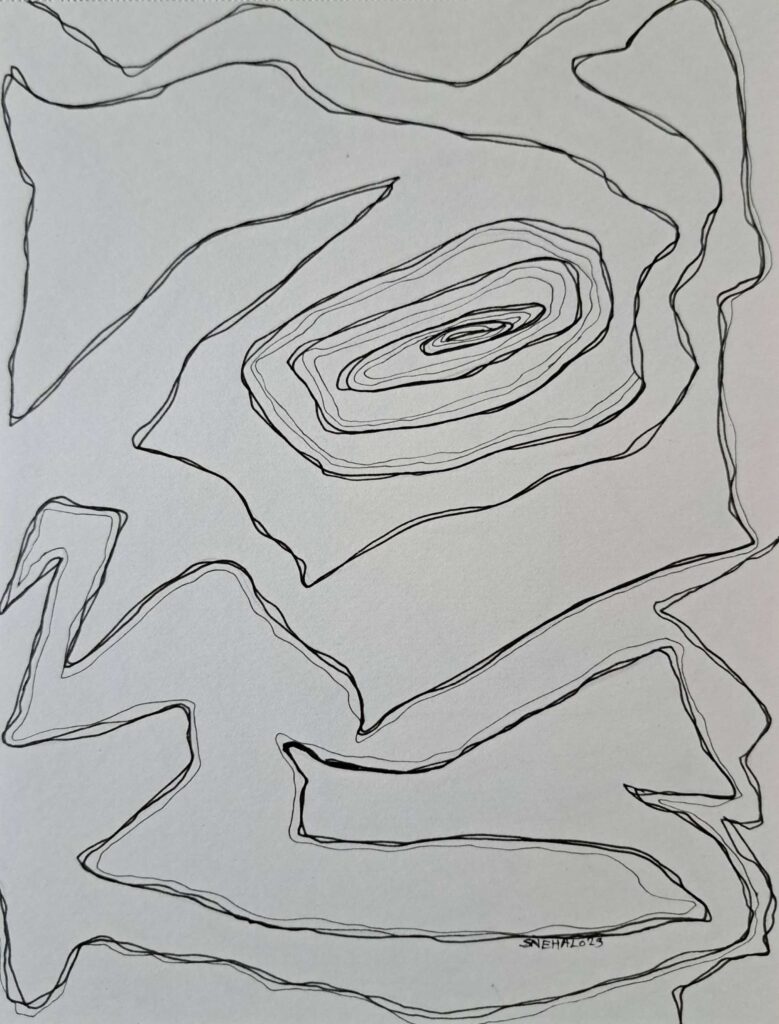 If you look closely, we are surrounded by lines. Are lines a primal form of divinity? Maybe. But if you do see it, you would realize a glaring truth: all forms lie within formlessness. Just the way all order lies within chaos. Method within abstraction. Alpha within omega. Look at it – A never ending queue is a line that makes a statement far more political than an actual sentence. A traffic jam is a jagged line that speaks of utter chaos. The lines on a tree bark speak of its age. Birds taking an early flight are lines rearranged by nature. Ripples are patterns created by the water. So are the waves of a sea or a dry shoreline. Scales on a fish. Look at mountains from the airplane. Lines redrawn by tectonic shifts. Look at the lines on your palms. Your future lies ensconced in them. So, you see, lines exist in everything we do. Lines are the truest form of our existence. Identity of a civilization, broken down to its bare minimum.