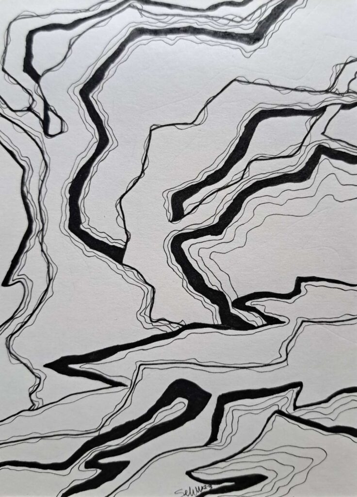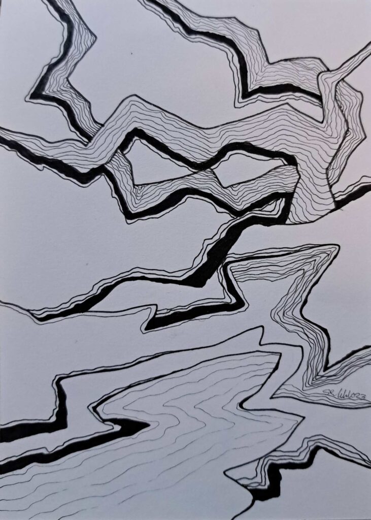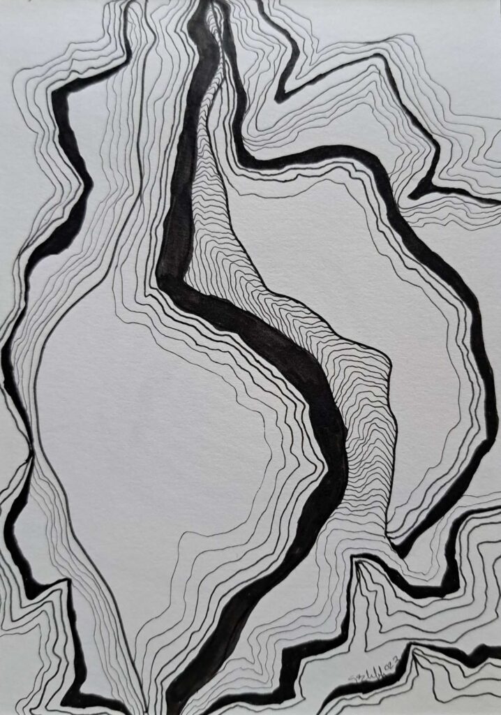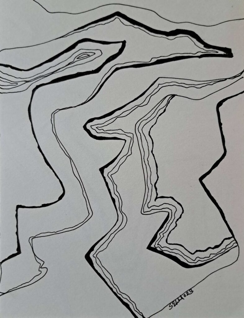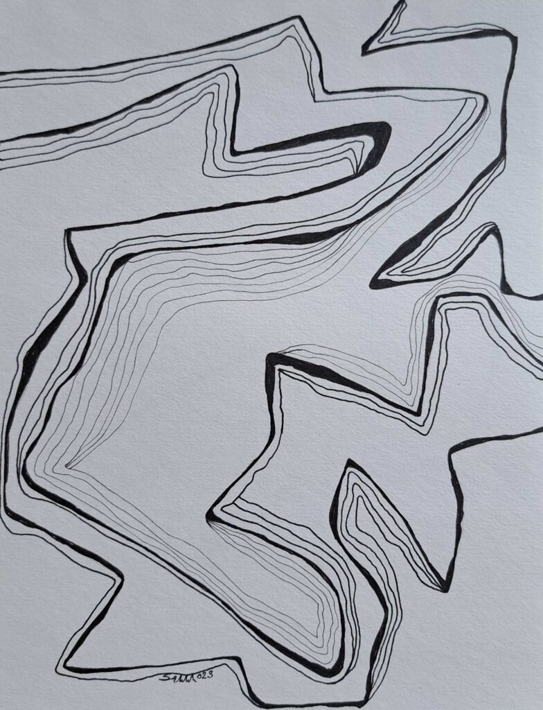 If you look closely, we are surrounded by lines. Are lines a primal form of divinity? Maybe. But if you do see it, you would realize a glaring truth: all forms lie within formlessness. Just the way all order lies within chaos. Method within abstraction. Alpha within omega. Look at it – A never ending queue is a line that makes a statement far more political than an actual sentence. A traffic jam is a jagged line that speaks of utter chaos. The lines on a tree bark speak of its age. Birds taking an early flight are lines rearranged by nature. Ripples are patterns created by the water. So are the waves of a sea or a dry shoreline. Scales on a fish. Look at mountains from the airplane. Lines redrawn by tectonic shifts. Look at the lines on your palms. Your future lies ensconced in them. So, you see, lines exist in everything we do. Lines are the truest form of our existence. Identity of a civilization, broken down to its bare minimum.