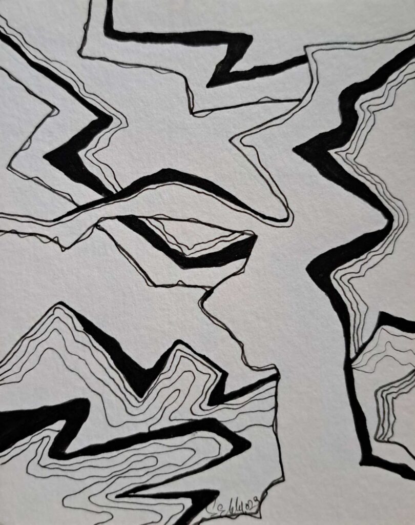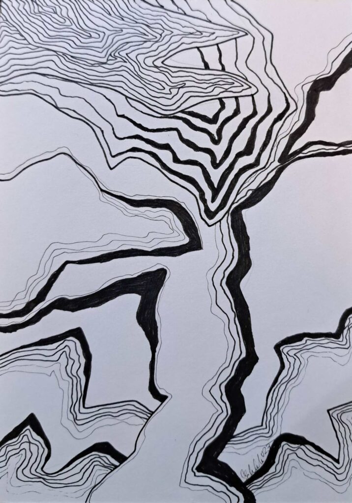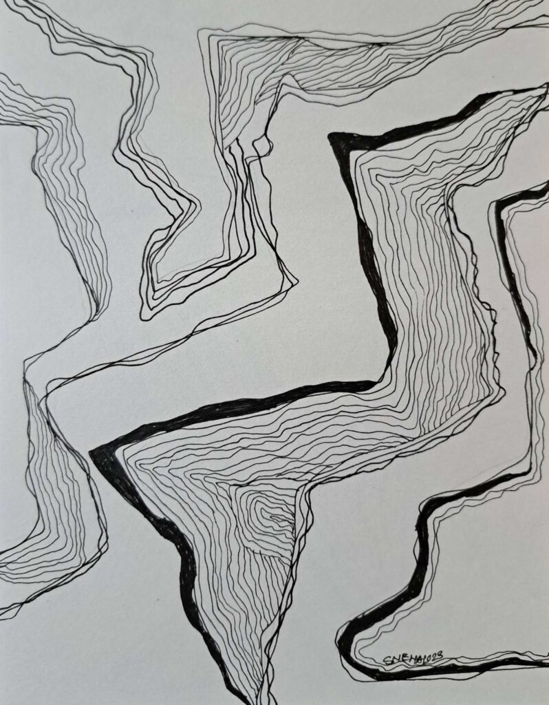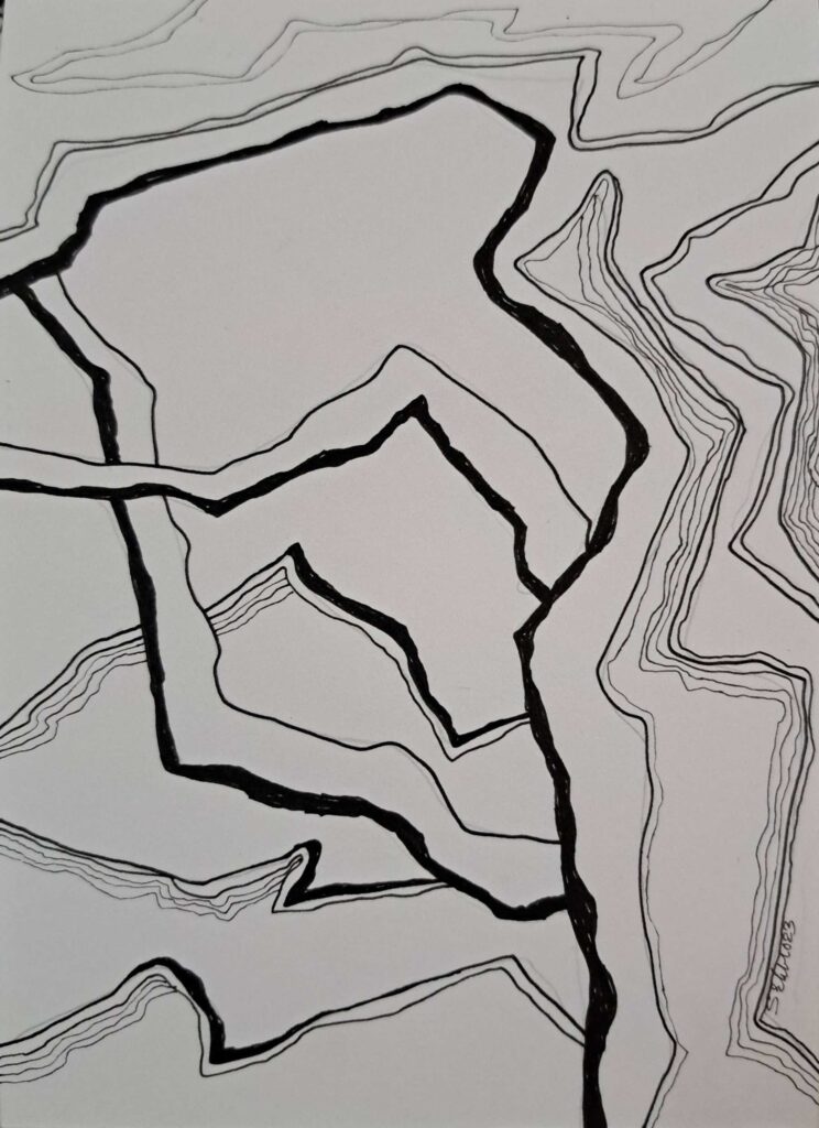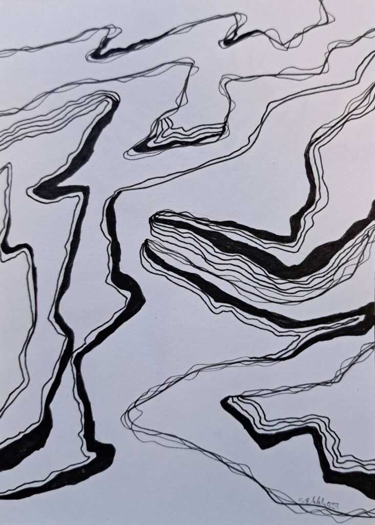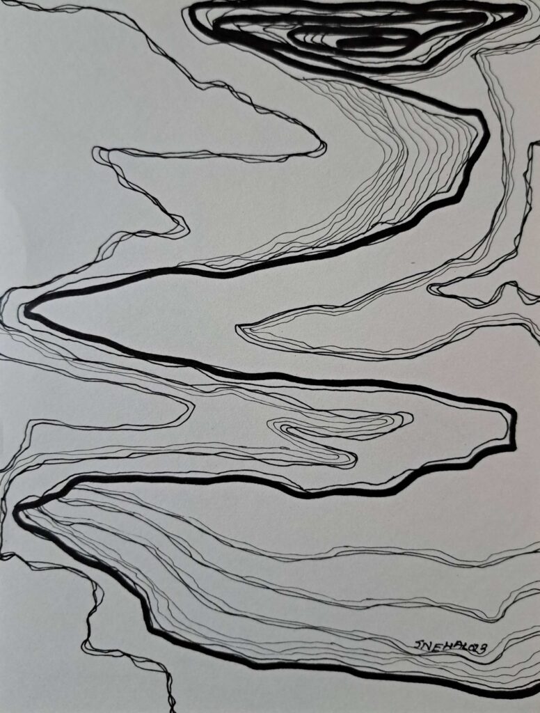 If you look closely, we are surrounded by lines. Are lines a primal form of divinity? Maybe. But if you do see it, you would realize a glaring truth: all forms lie within formlessness. Just the way all order lies within chaos. Method within abstraction. Alpha within omega. Look at it – A never ending queue is a line that makes a statement far more political than an actual sentence. A traffic jam is a jagged line that speaks of utter chaos. The lines on a tree bark speak of its age. Birds taking an early flight are lines rearranged by nature. Ripples are patterns created by the water. So are the waves of a sea or a dry shoreline. Scales on a fish. Look at mountains from the airplane. Lines redrawn by tectonic shifts. Look at the lines on your palms. Your future lies ensconced in them. So, you see, lines exist in everything we do. Lines are the truest form of our existence. Identity of a civilization, broken down to its bare minimum.